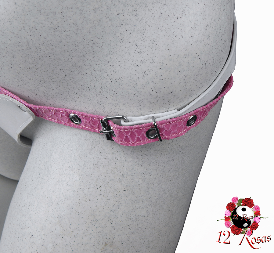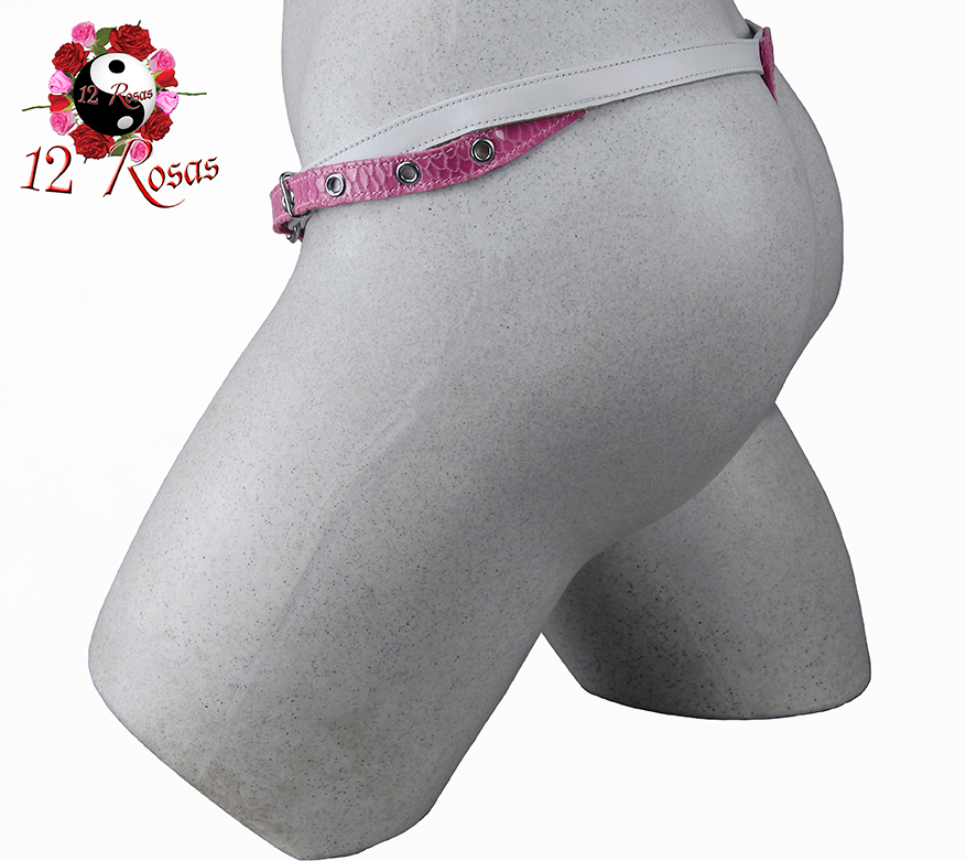 Tanga Barbie fabricado en cuero natural a doble cara, combinando blanco y rosa